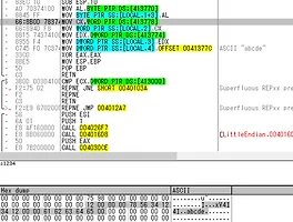 일단 dump 창에서 004109D0으로 이동해줍니다. 그리고 밑으로 내리면 null로 가득찬 곳을 볼수 있는데 여기에 문자열을 입력합니다.